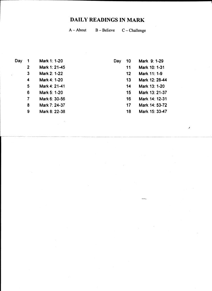 To the right there is the 18 devotional readings from the Gospel of Mark that both parents and children do together.