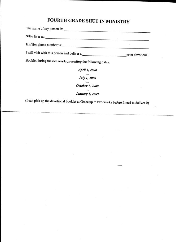 To the right is a sample of the shut-in ministry information and scheduling sheet.